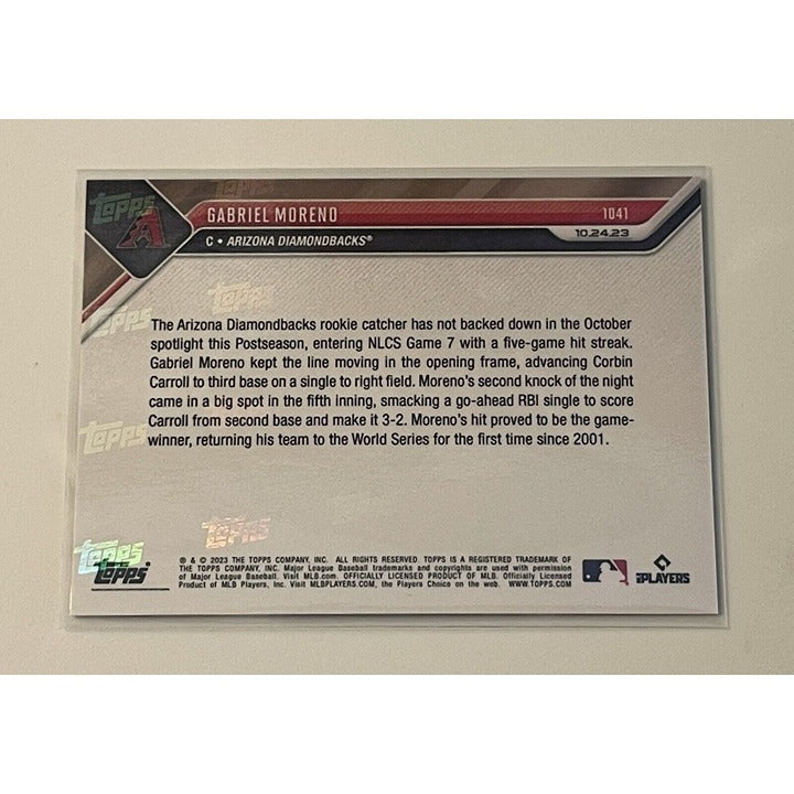 Gabriel Moreno RC 3/25 - 2023 MLB NLCS TOPPS NOW #1041 Purple - Game winner Card