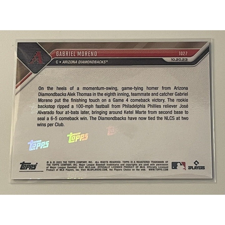 Gabriel Moreno* RC Arizona D’Backs - 2023 MLB TOPPS NOW 1027 - World Series Card