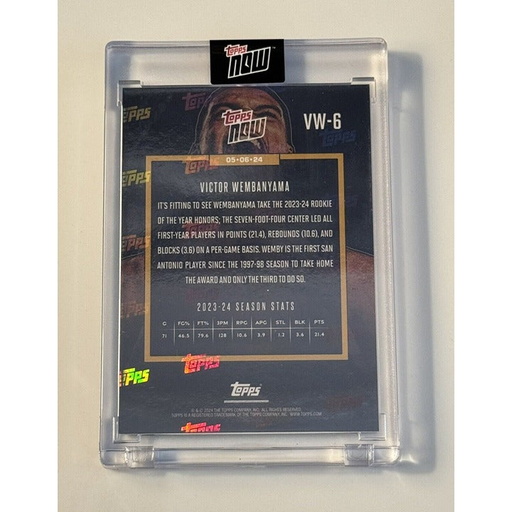 Victor Wembanyama RC* 2023-24 Topps Now Rookie of Year Refractor VW-6 NBA Spurs