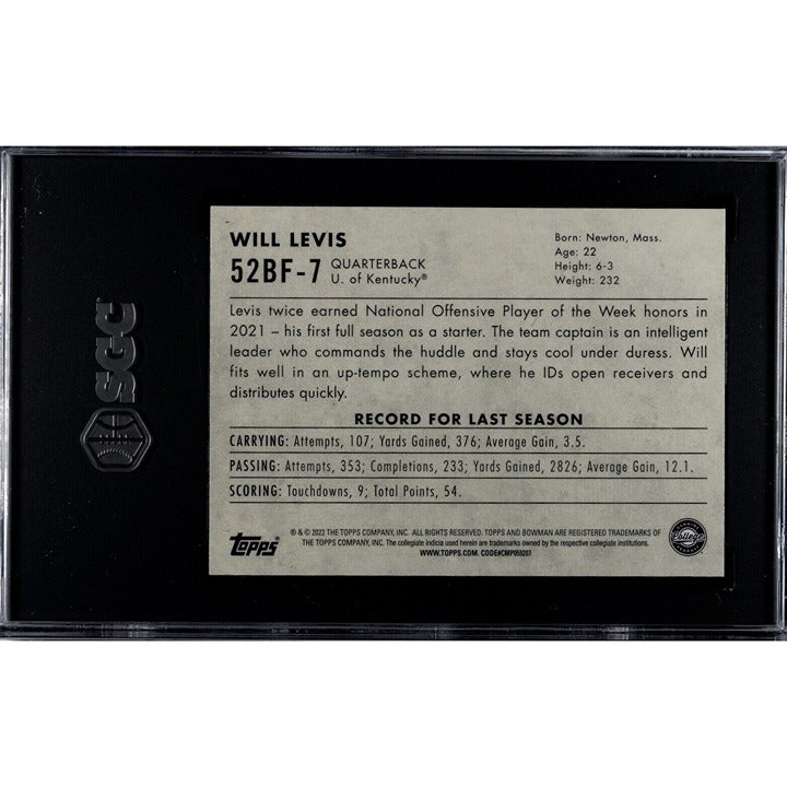 Will Levis 2022 Bowman U Chrome Refractor 1952 RC #52BF-7 Wildcats/Titans SGC 8.
