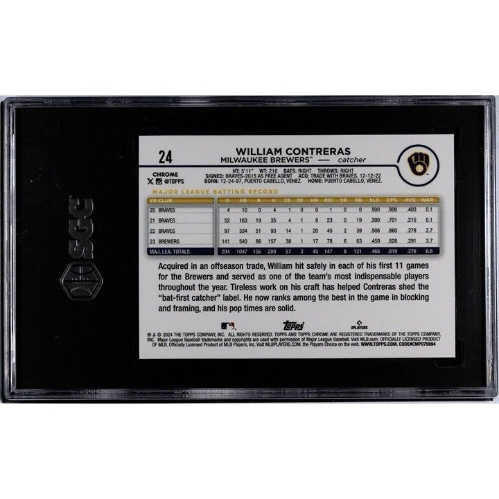 William Contreras 2024 Topps Chrome MLB Milwaukee Brewers Baseball #24 - SGC 10*