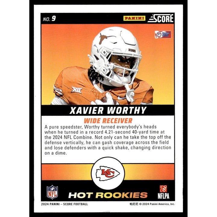 Xavier Worthy RC 2024 Score Football Card #9 Hot Rookies Kansas City Chiefs Mint