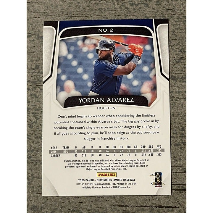 Yordan Alvarez* 2020 PANINI LIMITED ROOKIE #2 - MLB HOUSTON ASTROS WS CHAMPIONS*