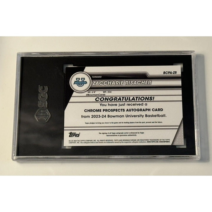 Zaccharie Risacher RC Auto 2023-24 Bowman U 1st Rookie NBA Hawks 1st Pic SGC 9.5