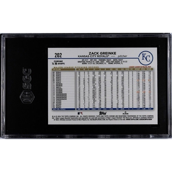 Zack Greinke 2024 Topps Chrome MLB Kansas City Royals Baseball Card #202 SGC 10*